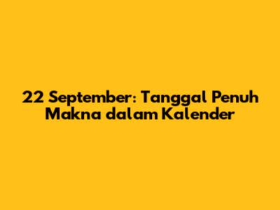 22 September adalah tanggal yang memiliki sejumlah perayaan dan peristiwa penting di berbagai belahan dunia. Dalam artikel ini, kita akan menjelajahi berbagai aspek dari tanggal ini, mulai dari peringatan khusus, hari libur nasional, hingga peristiwa bersejarah yang terjadi pada 22 September. Jadi, siap-siap untuk menggali informasi menarik seputar tanggal ini, guys!