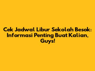 Cek Jadwal Libur Sekolah Besok: Informasi Penting