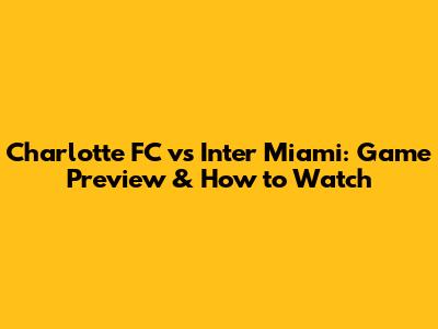 Charlotte FC Vs Inter Miami: Game Preview & How To Watch