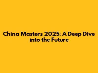 China Masters 2025: A Deep Dive Into The Future