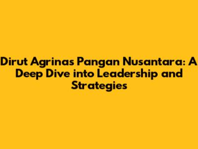 Dirut Agrinas Pangan Nusantara: Leadership, Strategy, And Future