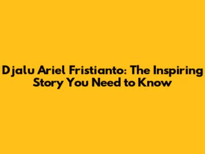 Djalu Ariel Fristianto: The Inspiring Story You Need To Know