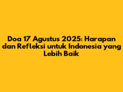 Doa 17 Agustus 2025 adalah ungkapan harapan dan refleksi kita sebagai bangsa Indonesia. Melalui doa, kita memohon berkah dan rahmat dari Tuhan Yang Maha Esa agar Indonesia senantiasa menjadi negara yang adil, makmur, dan sejahtera. Mari kita satukan hati dan tekad untuk mewujudkan harapan-harapan tersebut. Dengan semangat kemerdekaan, mari kita terus bekerja keras, belajar, dan berkarya untuk kemajuan Indonesia. Semoga Allah SWT senantiasa melindungi dan memberkahi bangsa Indonesia. Amin. Selamat Hari Kemerdekaan! Merdeka!