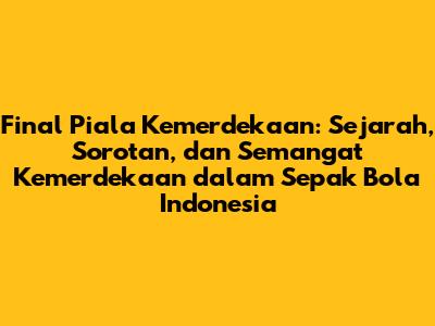 Final Piala Kemerdekaan adalah momen puncak dalam turnamen sepak bola yang sarat makna dan sejarah. Turnamen ini tidak hanya menjadi ajang kompetisi olahraga, tetapi juga perayaan semangat kemerdekaan, persatuan, dan identitas nasional. Melalui sejarah, sorotan pertandingan, dan semangat yang terkandung di dalamnya, Final Piala Kemerdekaan terus menginspirasi dan menyatukan bangsa Indonesia. Dari sorotan pertandingan yang menegangkan hingga semangat kemerdekaan yang membara, Final Piala Kemerdekaan adalah lebih dari sekadar pertandingan sepak bola. Ini adalah perayaan semangat juang, persatuan, dan identitas nasional yang terus hidup dalam diri bangsa Indonesia. Mari kita terus dukung dan merayakan Final Piala Kemerdekaan sebagai bagian dari perjalanan bangsa yang merdeka dan berdaulat.