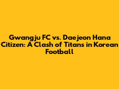 Hey guys! Get ready for an electrifying showdown as Gwangju FC and Daejeon Hana Citizen face off in what promises to be a thrilling encounter in Korean football. This isn't just another game; it's a battle of wills, a clash of strategies, and a showcase of some of the finest talent in the K League. Whether you're a die-hard fan of either team or simply a lover of the beautiful game, this match is one you won't want to miss. We're going to dive deep into what makes this matchup so compelling, exploring the history between these two clubs, the key players to watch, their current form, and what strategies they might employ to secure a victory. So, buckle up and let's get into the heart of this exciting contest!