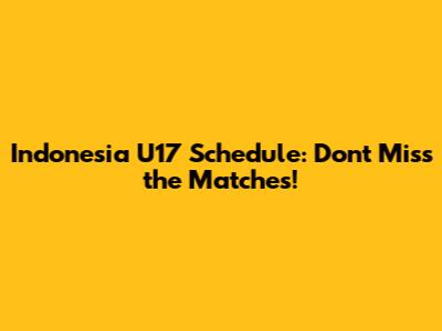 Why Following the Indonesia U17 Schedule Matters