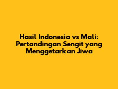 Hasil Indonesia vs Mali – Guys, mari kita bedah pertandingan yang bikin jantung berdebar antara Timnas Indonesia dan Mali! Pertandingan ini bukan cuma sekadar laga sepak bola biasa, tapi juga panggung pembuktian bagi para pemain muda berbakat. Kita semua tahu, sepak bola adalah olahraga yang penuh emosi, kejutan, dan tentu saja, harapan. Nah, dalam duel Indonesia vs Mali ini, semua elemen itu bersatu padu, menciptakan atmosfer yang tak terlupakan. Dari awal peluit dibunyikan hingga akhir pertandingan, kita disuguhi aksi-aksi menegangkan, strategi jitu, dan semangat juang yang membara. Jadi, siap-siap untuk menyelami lebih dalam, karena kita akan membahas segala hal tentang pertandingan ini, mulai dari pemain kunci, taktik yang digunakan, hingga momen-momen krusial yang menentukan hasil akhir.