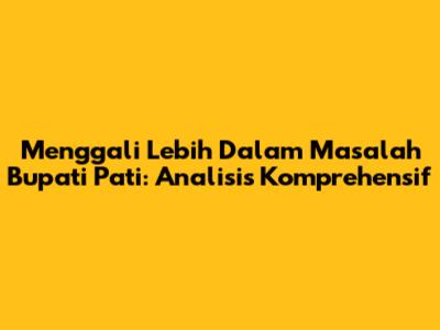 Guys, pernahkah kalian mendengar tentang masalah Bupati Pati? Mungkin sebagian dari kita familiar dengan berita-berita yang beredar, tapi tahukah kalian akar permasalahannya dan dampaknya bagi masyarakat Pati? Dalam artikel ini, kita akan mengupas tuntas isu-isu krusial yang melibatkan Bupati Pati, mulai dari dugaan penyalahgunaan wewenang, korupsi, hingga konflik kepentingan. Kita akan membahasnya secara mendalam, memberikan konteks yang jelas, dan mencoba memahami duduk perkaranya dari berbagai sudut pandang. Mengapa ini penting? Karena masalah kepemimpinan di tingkat daerah, seperti yang terjadi di Pati, punya dampak langsung pada kualitas hidup masyarakat, pembangunan infrastruktur, dan pelayanan publik. Jadi, yuk kita bedah bersama isu-isu hangat ini agar kita bisa lebih bijak dalam menyikapi informasi dan memberikan kontribusi positif bagi daerah kita.
