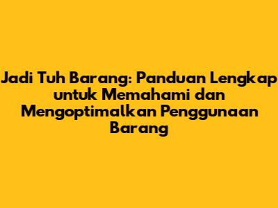 Jadi tuh barang, istilah yang sering kita dengar, merujuk pada pemahaman dan pengelolaan barang-barang yang kita miliki. Dalam dunia yang serba cepat ini, memahami cara menggunakan barang dengan efektif bukan hanya soal memiliki, tapi juga soal mengoptimalkan manfaat, memperpanjang umur pakai, dan meminimalkan dampak lingkungan. Artikel ini akan membahas secara mendalam tentang apa itu "jadi tuh barang", mengapa hal itu penting, dan bagaimana caranya agar kita bisa menjadi pengguna barang yang lebih cerdas dan bertanggung jawab. Yuk, kita mulai!