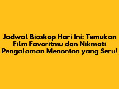 Jadwal Bioskop Hari Ini: Film & Jam Tayang Terbaru