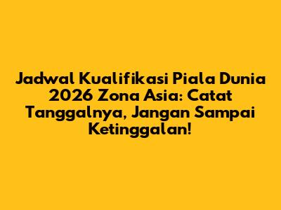 Hey guys, are you ready for the road to the 2026 FIFA World Cup? The excitement is building as teams across Asia gear up for the qualifying rounds. It's going to be an epic journey filled with intense matches, nail-biting moments, and of course, dreams of making it to the biggest stage in football. So, let's dive into the Jadwal Kualifikasi Piala Dunia 2026 specifically for the Asian Football Confederation (AFC) and make sure you don’t miss out on any of the action. The qualification process in Asia is always a thrilling ride, showcasing the continent's diverse footballing talent and passionate fans. From the preliminary rounds to the final play-offs, every match counts towards securing a coveted spot in the World Cup. Keep reading to get the latest updates, schedules, and everything you need to know about the Road to the 2026 FIFA World Cup from an Asian perspective. We'll break down the different stages, highlight key match-ups, and provide insights into the teams to watch. Whether you're a die-hard supporter or a casual fan, this guide will ensure you're well-prepared for the exhilarating journey ahead. The FIFA World Cup is not just a tournament; it's a global spectacle that unites nations and inspires dreams. For Asian teams, qualifying for the World Cup is a testament to their hard work, dedication, and the growing strength of football in the region. The Jadwal Kualifikasi Piala Dunia 2026 represents the first step on this challenging but rewarding path. So, let's get started and explore what lies ahead in the quest for World Cup glory. The anticipation is palpable, and the stage is set for some unforgettable footballing moments. Don't forget to mark your calendars and rally behind your favorite teams as they battle it out on the field. This is more than just a series of matches; it's a journey of hope, ambition, and the pursuit of a dream shared by millions across Asia. Let the games begin!