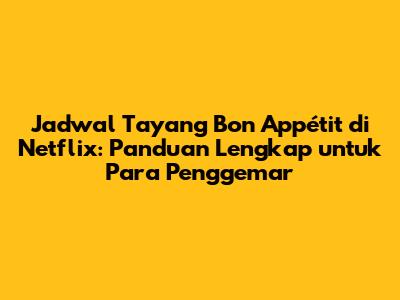 Nah, sekarang kalian sudah tahu jam berapa Bon Appétit tayang di Netflix dan bagaimana cara menikmati serial kuliner favorit ini. Ingatlah untuk selalu mengecek jadwal tayang di Netflix, memanfaatkan fitur notifikasi, dan mempersiapkan diri untuk pengalaman menonton yang seru. Dengan informasi yang tepat dan tips tambahan, kalian bisa menikmati setiap episode Bon Appétit tanpa khawatir ketinggalan.