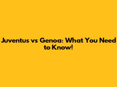 Juventus Vs Genoa: What You Need To Know!