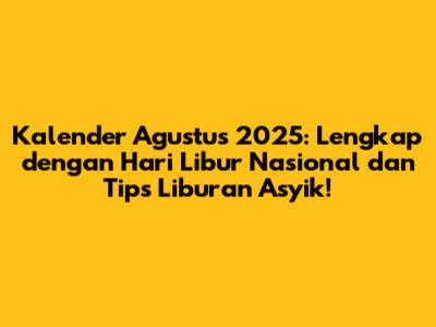 Agustus 2025 sudah di depan mata, guys! Pasti pada penasaran kan, ada apa aja di bulan yang satu ini? Nah, kali ini kita bakal bahas tuntas kalender Agustus 2025, lengkap dengan hari libur nasional, tanggal-tanggal penting, dan tentunya tips liburan seru yang bisa kamu coba. Jadi, siap-siap catat tanggal dan rencanain liburanmu ya!