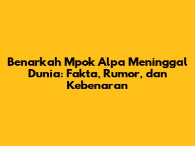 Apakah Anda pernah mendengar kabar tentang Mpok Alpa meninggal dunia? Kabar duka tentang selebriti memang seringkali menjadi perhatian publik, dan tak jarang memicu rasa penasaran dan kekhawatiran. Dalam artikel ini, kita akan membahas secara mendalam tentang rumor yang beredar seputar Mpok Alpa, menelusuri fakta-fakta yang ada, serta mencoba mengungkap kebenaran di balik berita tersebut. Jadi, mari kita mulai perjalanan investigasi ini bersama-sama!