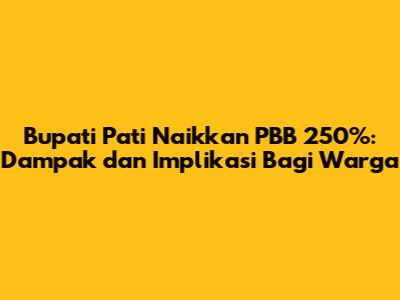 Bupati Pati, baru-baru ini mengumumkan kenaikan Pajak Bumi dan Bangunan (PBB) sebesar 250 persen. Wih, gede banget kan, guys? Kenaikan signifikan ini tentu saja menimbulkan berbagai reaksi dan pertanyaan dari masyarakat. Dalam artikel ini, kita akan membahas secara mendalam mengenai keputusan Bupati Pati, dampaknya bagi warga, serta implikasi yang mungkin timbul.