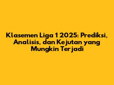 Liga 1 2025 diprediksi akan semakin kompetitif dengan persaingan yang ketat di antara tim-tim peserta. Tim-tim besar seperti Persija Jakarta, Persib Bandung, Bali United, dan Arema FC akan tetap menjadi kandidat juara, tetapi tim-tim kuda hitam juga memiliki potensi untuk membuat kejutan. Faktor-faktor seperti komposisi pemain, strategi pelatih, kondisi fisik dan mental, konsistensi, dan faktor eksternal akan menjadi penentu dalam klasemen Liga 1 2025. Jadi, mari kita nantikan dan saksikan bagaimana jalannya kompetisi dan siapa yang akan keluar sebagai juara!
