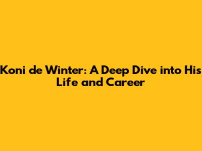 Koni De Winter: The Inspiring Story You Need To Know