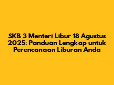 Libur nasional adalah momen yang selalu dinantikan oleh banyak orang. Kesempatan untuk beristirahat, berkumpul bersama keluarga, atau merencanakan liburan menjadi hal yang sangat berharga. Nah, kabar baiknya, sudah ada kepastian mengenai hari libur nasional dan cuti bersama untuk tahun 2025! Salah satu tanggal yang menarik perhatian adalah 18 Agustus 2025. Tapi, apa sebenarnya yang membuat tanggal ini begitu penting? Dan bagaimana SKB 3 Menteri berperan dalam penetapan hari libur ini? Mari kita bahas tuntas dalam artikel ini.