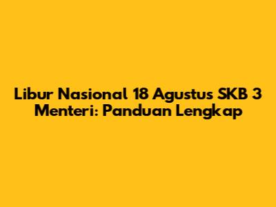 Libur nasional tanggal 18 Agustus, apakah ada dalam SKB 3 Menteri? Pertanyaan ini seringkali muncul di benak banyak orang, terutama menjelang tanggal tersebut. Untuk menjawab pertanyaan ini, kita perlu merujuk pada SKB 3 Menteri yang berlaku untuk tahun yang bersangkutan. Secara umum, tanggal 18 Agustus bukan merupakan hari libur nasional yang rutin diperingati setiap tahunnya. Namun, ada beberapa kondisi yang bisa membuat tanggal ini menjadi hari libur. Salah satunya adalah jika tanggal 18 Agustus bertepatan dengan hari besar keagamaan atau hari penting nasional lainnya. Misalnya, jika tanggal 18 Agustus bertepatan dengan Hari Raya Idul Adha atau Hari Raya Waisak, maka tanggal tersebut akan ditetapkan sebagai hari libur nasional. Selain itu, pemerintah juga bisa menetapkan tanggal 18 Agustus sebagai hari libur jika ada peristiwa penting yang terjadi pada tanggal tersebut. Misalnya, jika ada perayaan kemerdekaan yang sangat besar atau ada kunjungan kenegaraan dari tokoh penting, pemerintah bisa menetapkan tanggal 18 Agustus sebagai hari libur untuk memberikan kesempatan bagi masyarakat untuk berpartisipasi dalam acara tersebut. Namun, perlu diingat bahwa penetapan hari libur seperti ini bersifat situasional dan gak bisa diprediksi sebelumnya. Untuk mengetahui secara pasti apakah tanggal 18 Agustus merupakan hari libur atau tidak, kita perlu merujuk pada SKB 3 Menteri yang berlaku untuk tahun yang bersangkutan. SKB ini biasanya diterbitkan pada awal tahun atau akhir tahun sebelumnya. Dalam SKB tersebut, akan disebutkan secara jelas daftar hari libur nasional dan cuti bersama untuk tahun yang bersangkutan. Jadi, gak perlu bingung atau bertanya-tanya lagi, langsung aja cek SKB 3 Menteri! Selain itu, kita juga bisa mencari informasi mengenai hari libur nasional dan cuti bersama melalui website resmi pemerintah atau media massa. Pemerintah biasanya akan mengumumkan secara resmi jika ada perubahan atau penambahan hari libur. Jadi, pastikan kita selalu update dengan informasi terbaru. Jika tanggal 18 Agustus bukan merupakan hari libur nasional, kita tetap bisa memanfaatkan hari tersebut untuk beristirahat atau melakukan kegiatan yang menyenangkan. Misalnya, kita bisa mengambil cuti atau memanfaatkan akhir pekan untuk berlibur bersama keluarga atau teman-teman. Atau, kita juga bisa menghabiskan waktu di rumah untuk bersantai dan recharge energi. Yang penting, kita tetap bisa menikmati hidup dan menjaga keseimbangan antara pekerjaan dan kehidupan pribadi. Di bagian selanjutnya, kita akan membahas mengenai cara memanfaatkan hari libur nasional dan cuti bersama dengan lebih efektif. Yuk, simak terus!