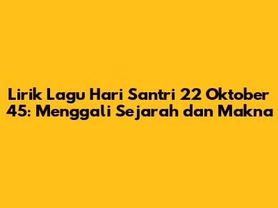 Hari Santri Nasional, yang diperingati setiap tanggal 22 Oktober, bukan hanya sekadar hari libur. Ini adalah momen penting untuk mengenang dan menghargai peran krusial para santri dalam perjuangan kemerdekaan Indonesia. Salah satu cara untuk merayakan dan menghayati semangat Hari Santri adalah melalui lagu-lagu Hari Santri. Nah, artikel ini akan membahas secara mendalam tentang lirik lagu Hari Santri yang populer, khususnya yang berkaitan dengan tahun 1945, serta makna yang terkandung di dalamnya. Yuk, kita gali lebih dalam!