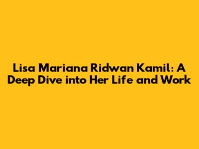 Hey guys! Ever wondered about the amazing people behind the public figures we know and admire? Today, we're diving deep into the life of Lisa Mariana Ridwan Kamil, a name that resonates with many due to her significant contributions and inspiring journey. This article aims to give you a comprehensive overview of her life, career, and everything in between. So, let's get started and explore the fascinating world of Lisa Mariana Ridwan Kamil!