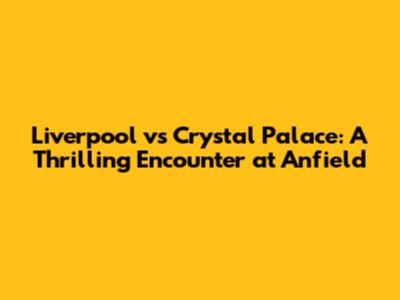 Liverpool Vs Crystal Palace: Thrilling Anfield Clash!