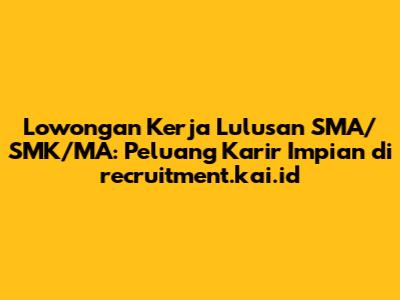 Guys, buat kalian para lulusan SMA, SMK, atau MA yang lagi galau nyari kerja, ini kabar gembira banget! Siapa sih yang nggak pengen punya karir cemerlang, apalagi kalau bisa bergabung sama perusahaan keren seperti KAI? Nah, kali ini kita bakal kupas tuntas soal lowongan kerja lulusan SMA/SMK/MA di recruitment.kai.id. Siap-siap ya, karena ini bisa jadi tiket emas kamu menuju kesuksesan!