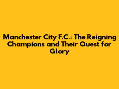 Manchester City F.C.: History, Players, And Future Goals