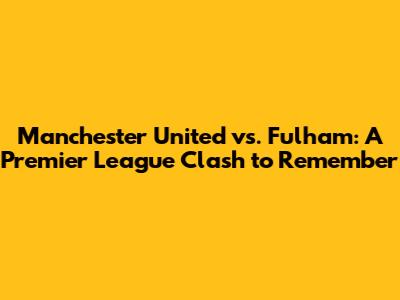 Manchester United Vs. Fulham: Thrilling Premier League Showdown