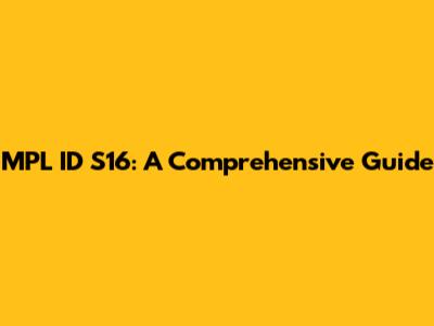 MPL ID S16: A Comprehensive Guide