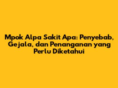 Mpok Alpa Sakit Apa? Penyebab, Gejala, Dan Penanganan