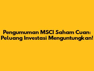 MSCI: Peluang Cuan Saham? Ini Yang Perlu Kamu Tahu!