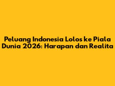 Guys, mari kita ngobrolin soal impian besar sepak bola Indonesia: lolos ke Piala Dunia 2026! Ini bukan cuma sekadar mimpi, tapi sebuah target yang terus diperjuangkan oleh PSSI dan seluruh penggila bola di Tanah Air. Kualifikasi Piala Dunia 2026 ini memang terasa spesial karena formatnya yang baru, dengan jatah tiket yang lebih banyak untuk Asia. Jadi, peluang Indonesia lolos ke putaran final semakin terbuka lebar, dong? Nah, di artikel ini, kita bakal kupas tuntas seberapa besar sih harapan kita, apa aja tantangan yang dihadapi, dan strategi apa yang bisa diambil agar Garuda bisa terbang tinggi di panggung dunia. Siapin kopi kalian, mari kita selami bersama!