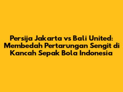Prediksi pertandingan Persija Jakarta vs Bali United selalu menjadi perdebatan yang menarik di kalangan penggemar sepak bola. Beberapa orang mungkin memprediksi Persija akan menang, sementara yang lain mungkin memprediksi Bali United akan menang. Namun, yang pasti adalah pertandingan ini akan menjadi tontonan yang menarik dan penuh dengan drama. Siapapun yang menang, yang penting adalah kedua tim akan memberikan yang terbaik dan berusaha meraih kemenangan.