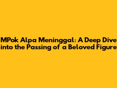 MPok Alpa Meninggal - these are the words that sent shockwaves through the community, leaving many in a state of grief and reflection. This article delves into the life and legacy of MPok Alpa, exploring the impact he had, the memories he created, and the void he leaves behind. It's a tribute to a person who touched so many lives, offering insights into his journey and the lessons we can learn from his time with us. Let's take a closer look at the life and times of MPok Alpa, his impact, and what made him so special. This is not just about the news of his passing, but also about celebrating the life of a remarkable individual.