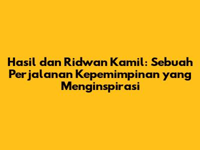 Ridwan Kamil telah menginspirasi banyak orang untuk berani bermimpi dan mewujudkan impian mereka. Ia juga menunjukkan bahwa kita bisa meraih sukses dalam berbagai bidang, asalkan kita memiliki kerja keras, dedikasi, dan komitmen. Ia juga menjadi contoh bagi para pemimpin muda untuk selalu berinovasi dan memberikan pelayanan terbaik bagi masyarakat. Ridwan Kamil adalah sosok yang patut kita teladani. Ia adalah seorang arsitek dan pemimpin yang mampu memberikan dampak positif bagi masyarakat.