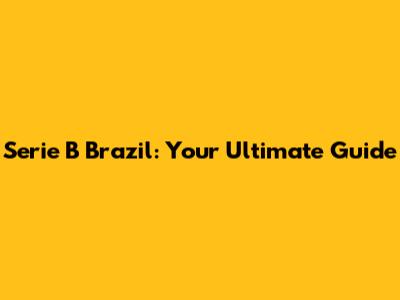 Serie B Brazil: All You Need To Know