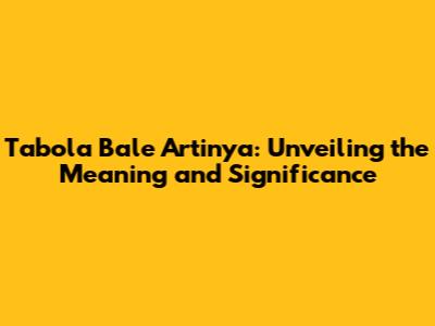 Tabola Bale: Meaning, Cultural Significance, And Usage