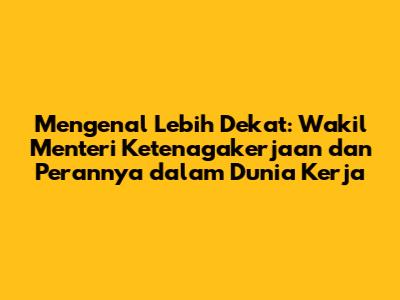 Wakil Menteri Ketenagakerjaan (Wamenaker) adalah sosok penting dalam struktur pemerintahan Indonesia, khususnya di bidang ketenagakerjaan. Mari kita bedah lebih dalam tentang peran, tanggung jawab, dan kontribusi Wamenaker dalam memajukan dunia kerja di Indonesia. Guys, kita akan kupas tuntas tentang siapa sih sebenarnya Wamenaker ini, apa saja tugasnya sehari-hari, dan bagaimana ia berkontribusi pada nasib para pekerja di Indonesia. Siap-siap, ya!