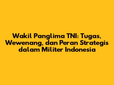 Dalam struktur organisasi Tentara Nasional Indonesia (TNI), jabatan Wakil Panglima TNI memegang peranan krusial dalam membantu Panglima TNI menjalankan tugas-tugasnya. Jabatan ini tidak hanya bersifat administratif, tetapi juga strategis dalam memastikan efektivitas operasional dan koordinasi di seluruh jajaran TNI. Artikel ini akan membahas secara mendalam mengenai Wakil Panglima TNI, termasuk tugas, wewenang, peran strategis, serta sejarah dan tokoh-tokoh penting yang pernah menduduki jabatan tersebut. Kami akan membahas bagaimana jabatan ini berkontribusi pada stabilitas dan keamanan negara, serta menjawab pertanyaan-pertanyaan umum yang sering muncul terkait peran vital ini.