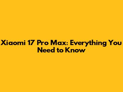 Xiaomi 17 Pro Max: Everything You Need To Know